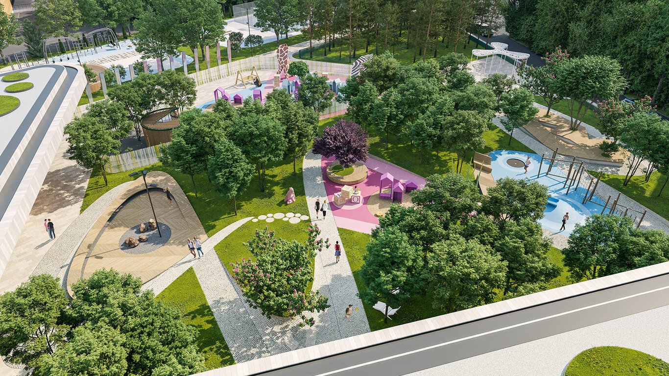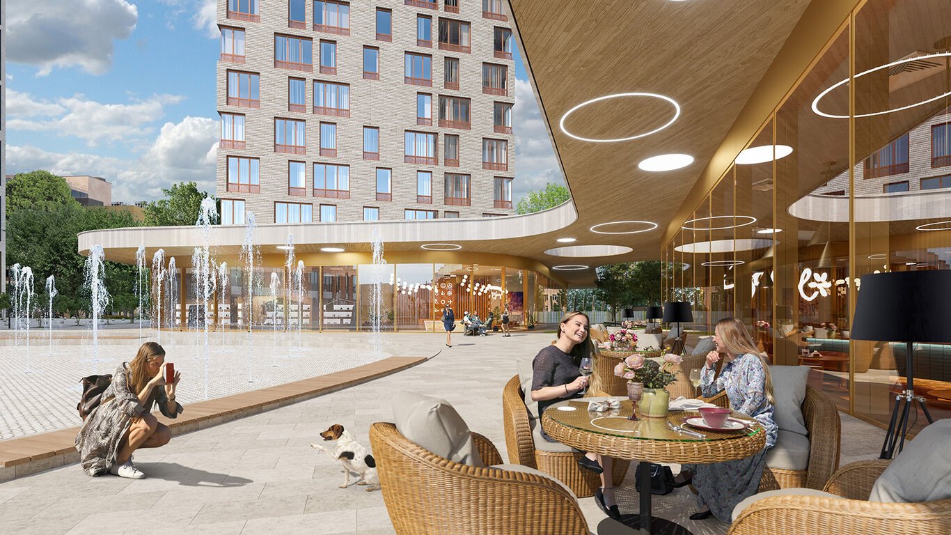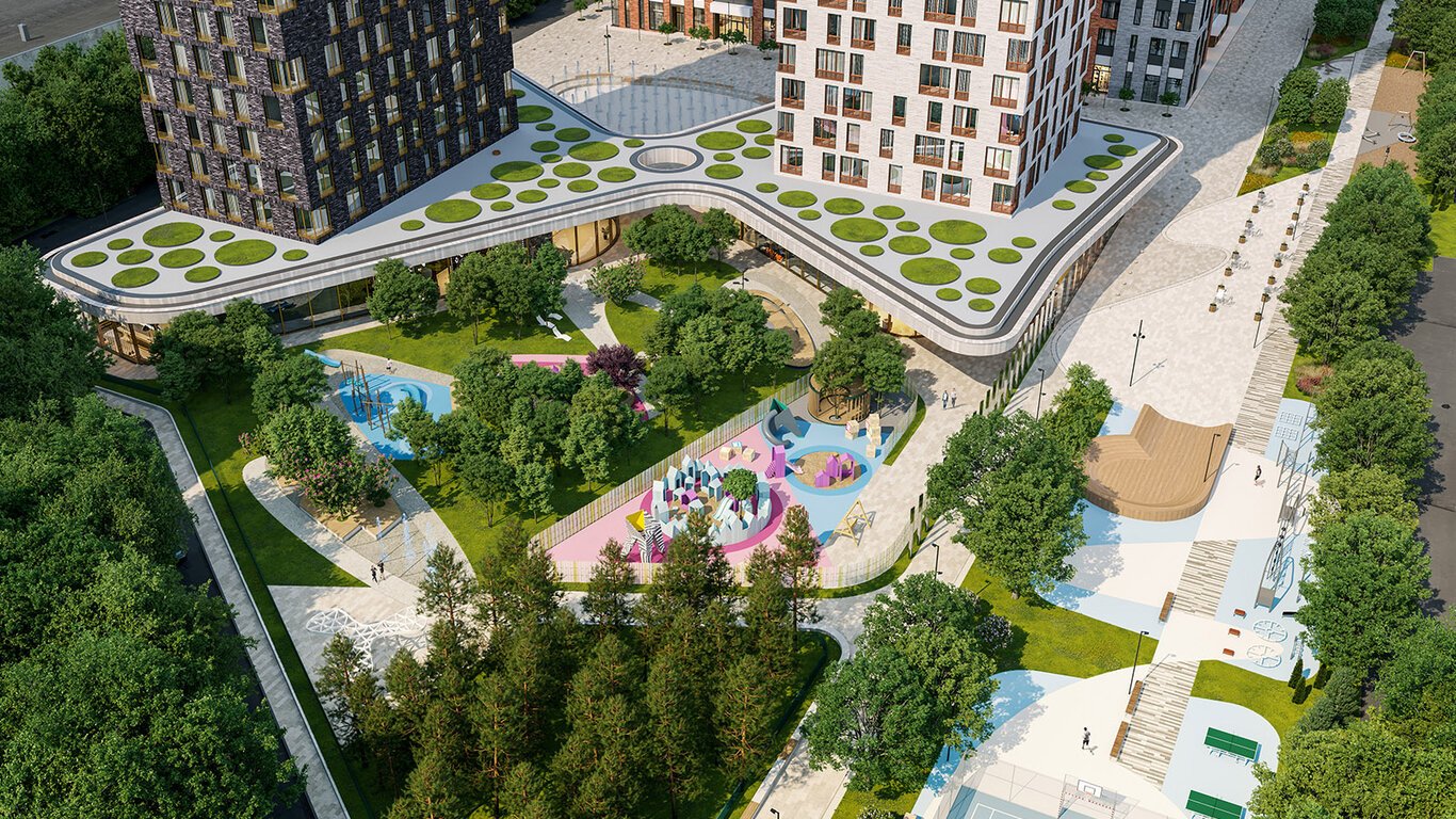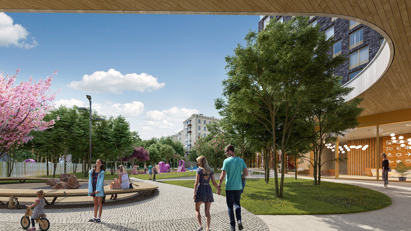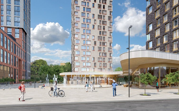 Оригинальная концепция проекта — результат совместной работы известных российских архитектурных бюро SPEECH и ADM. Жилой комплекс нового поколения формирует комфортную среду для жизни в мегаполисе. Центром квартала станет площадь с фонтанами, по периметру которой расположатся зона workout, променад, спортивные и игровые площадки, кафе с летними верандами.