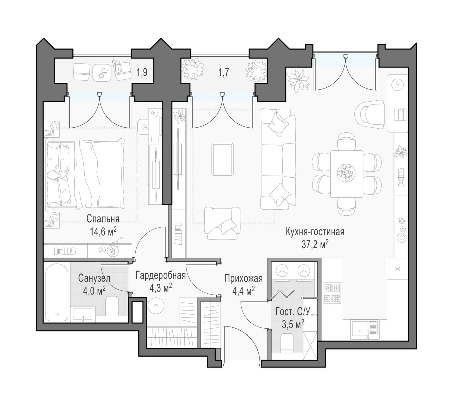 • От студий до пентхаусов с террасами и каминами