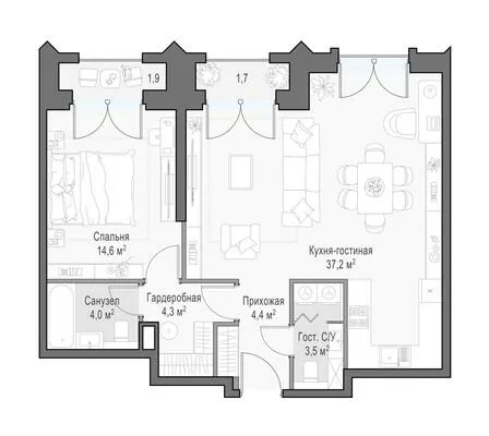 ГлавнаяЖилая недвижимостьЖК «Достижение» 2-комнатная квартира № 1