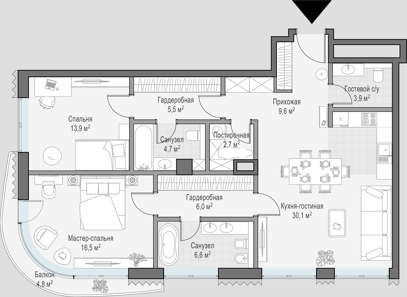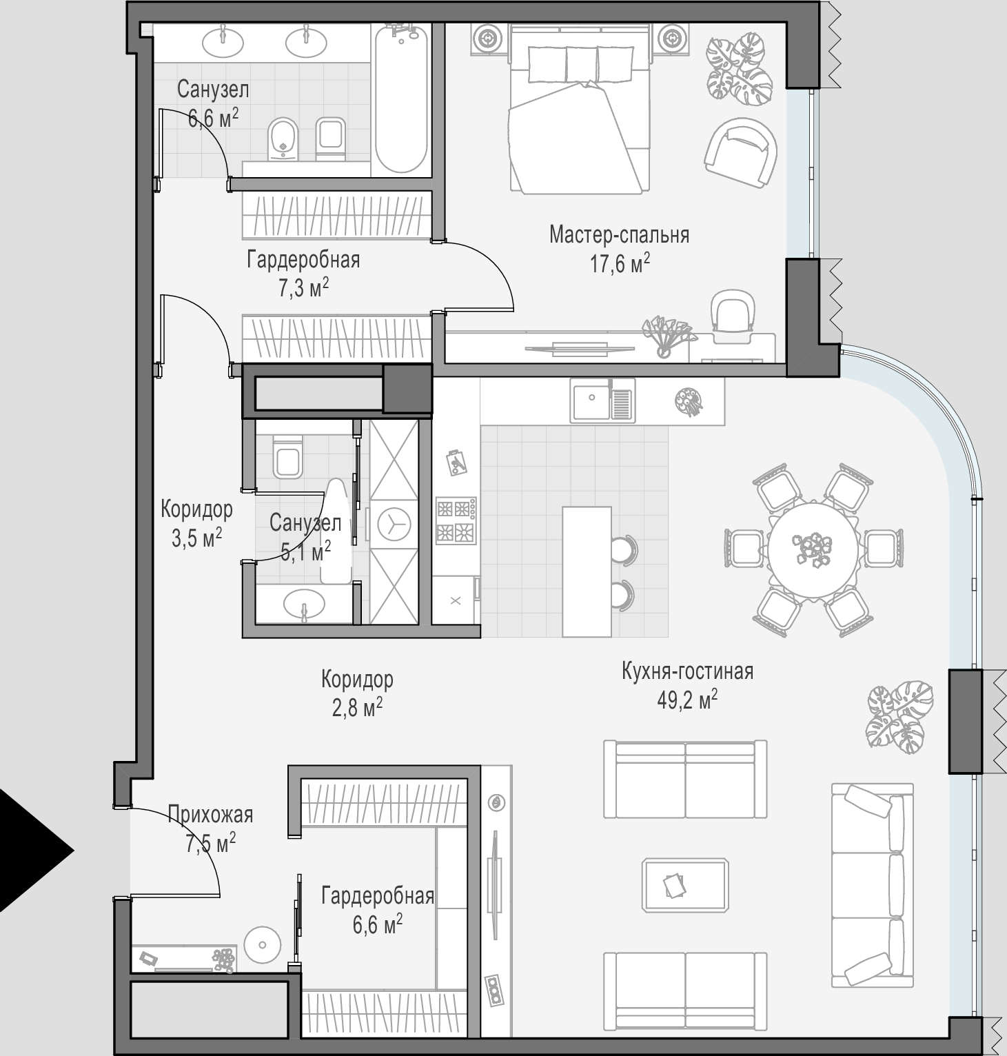 • Просторные балконы и террасы в большинстве квартир.