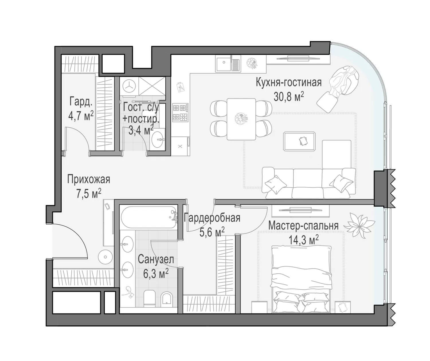 ГлавнаяЖилая недвижимостьДом «Лаврушинский»1-комнатная квартира № 3