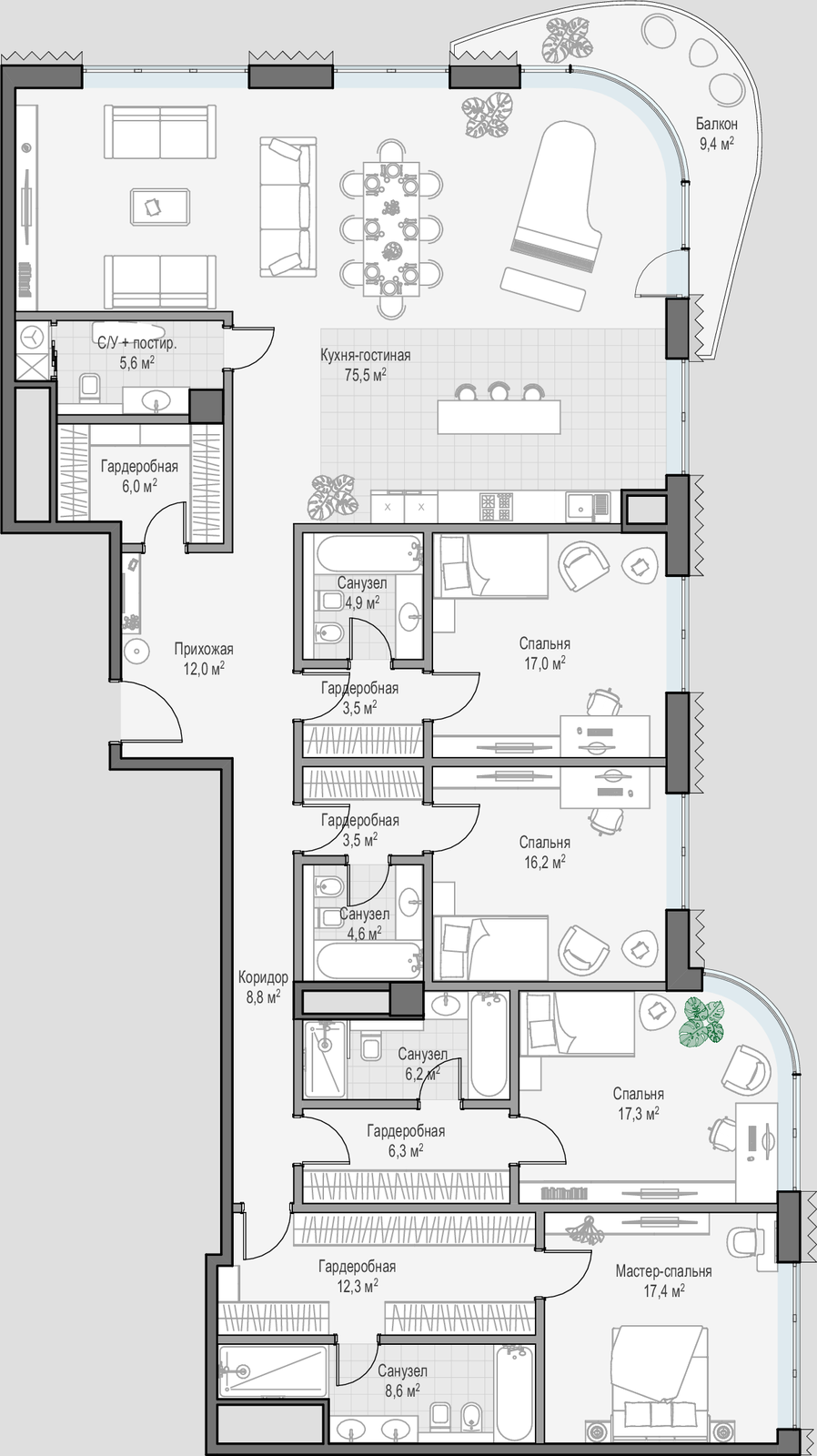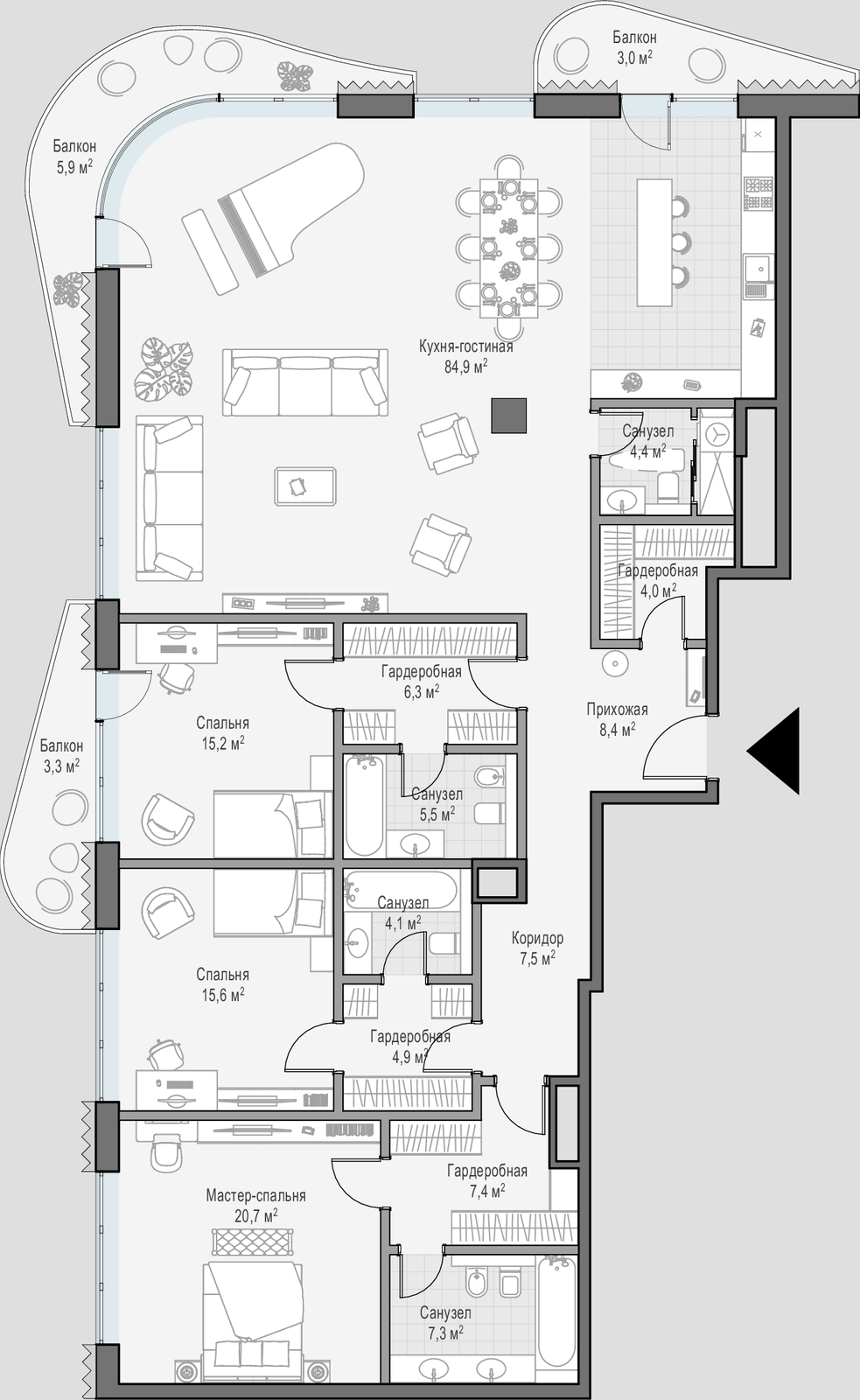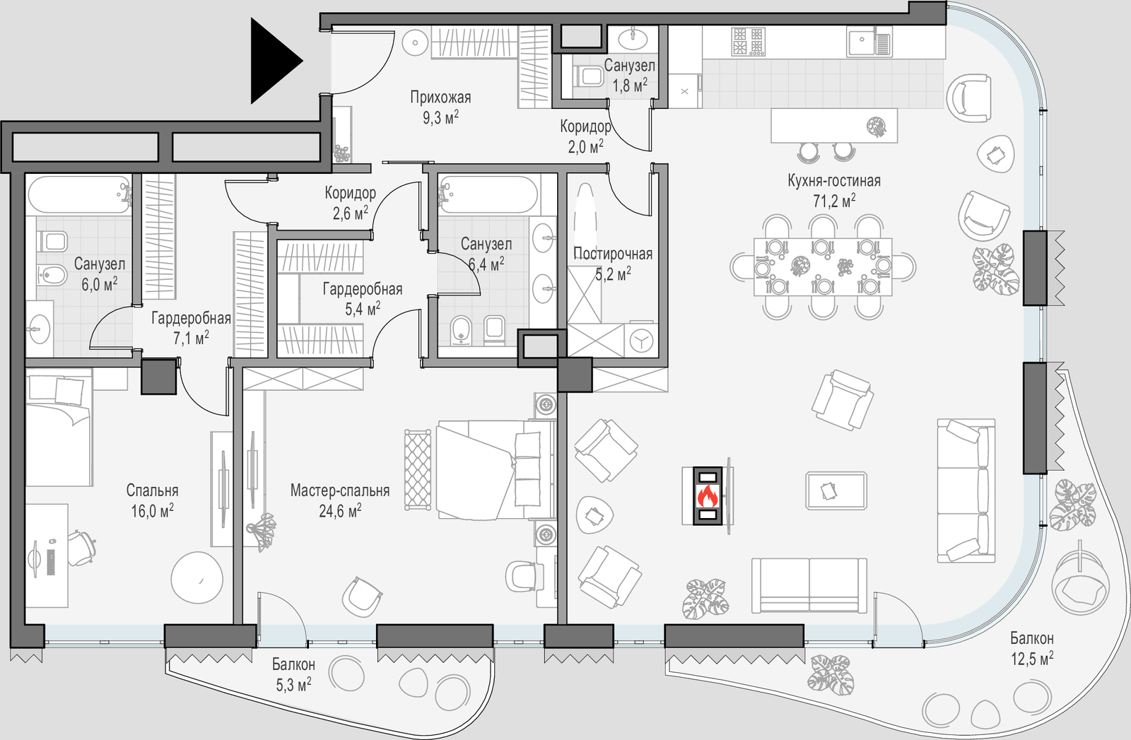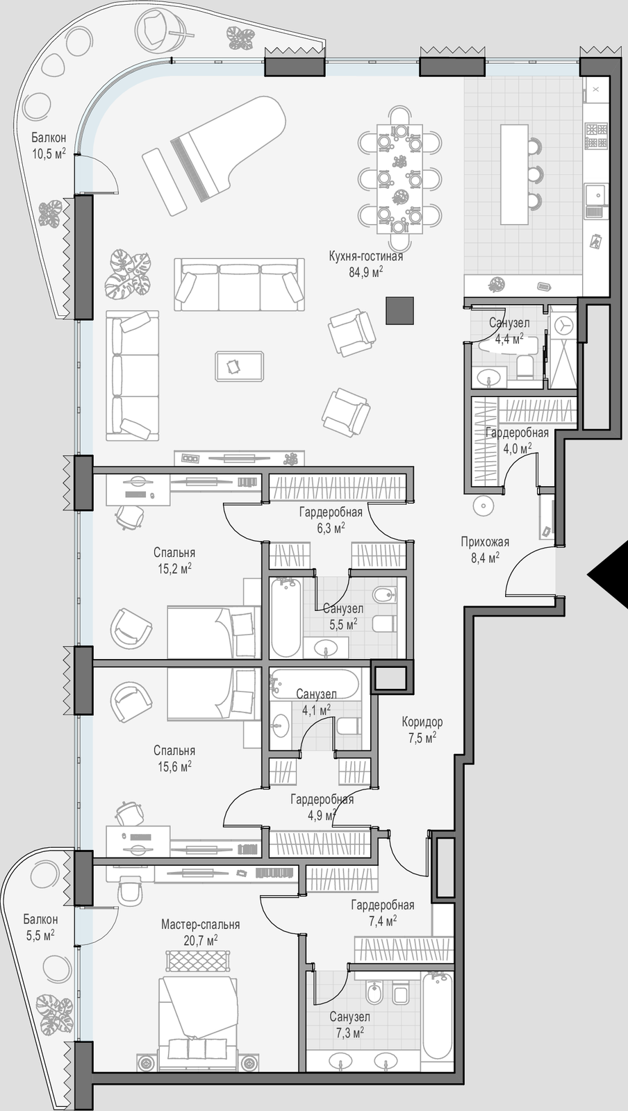 • Просторные балконы и террасы в большинстве квартир.