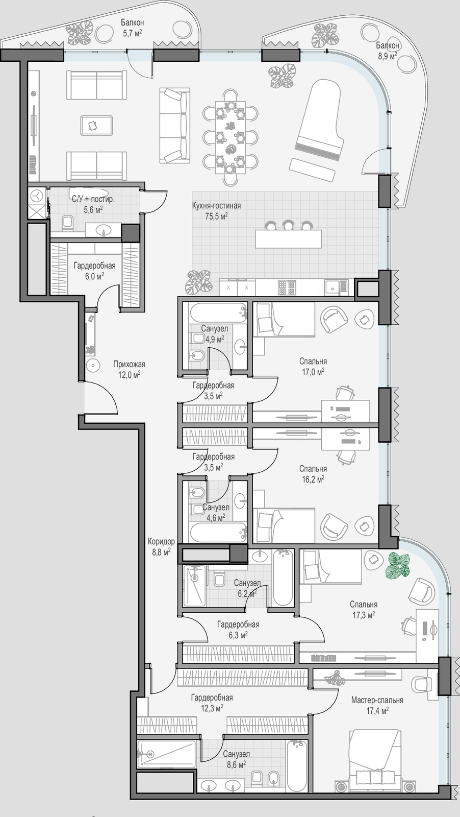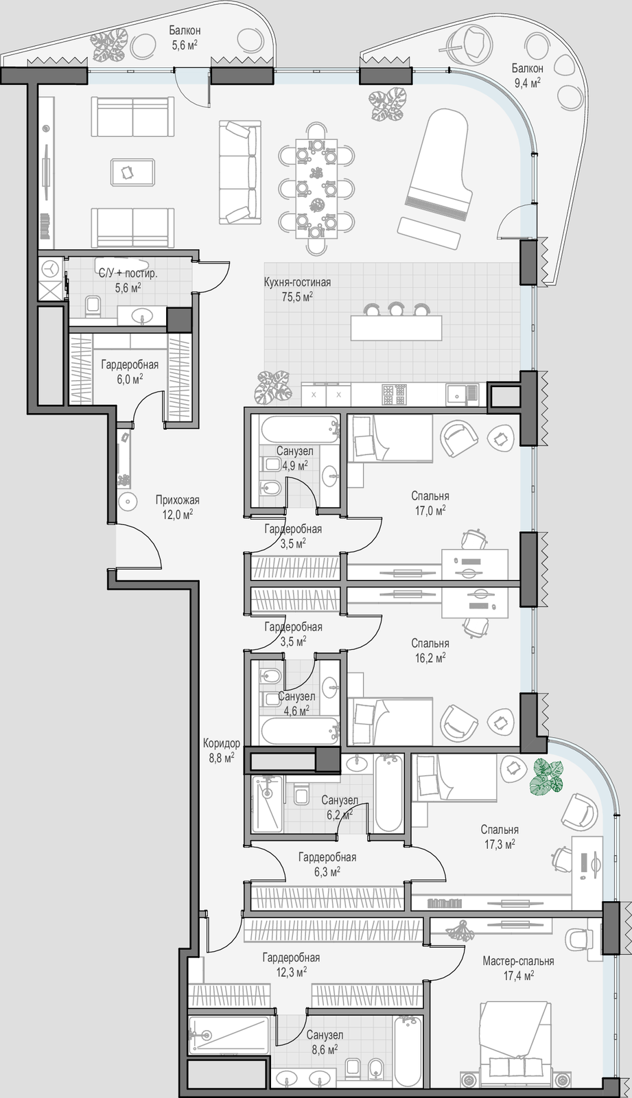 • Уникальный выбор роскошных квартир и пентхаусов с собственными бассейнами, каминами, террасами с максимальными видовыми характеристиками.