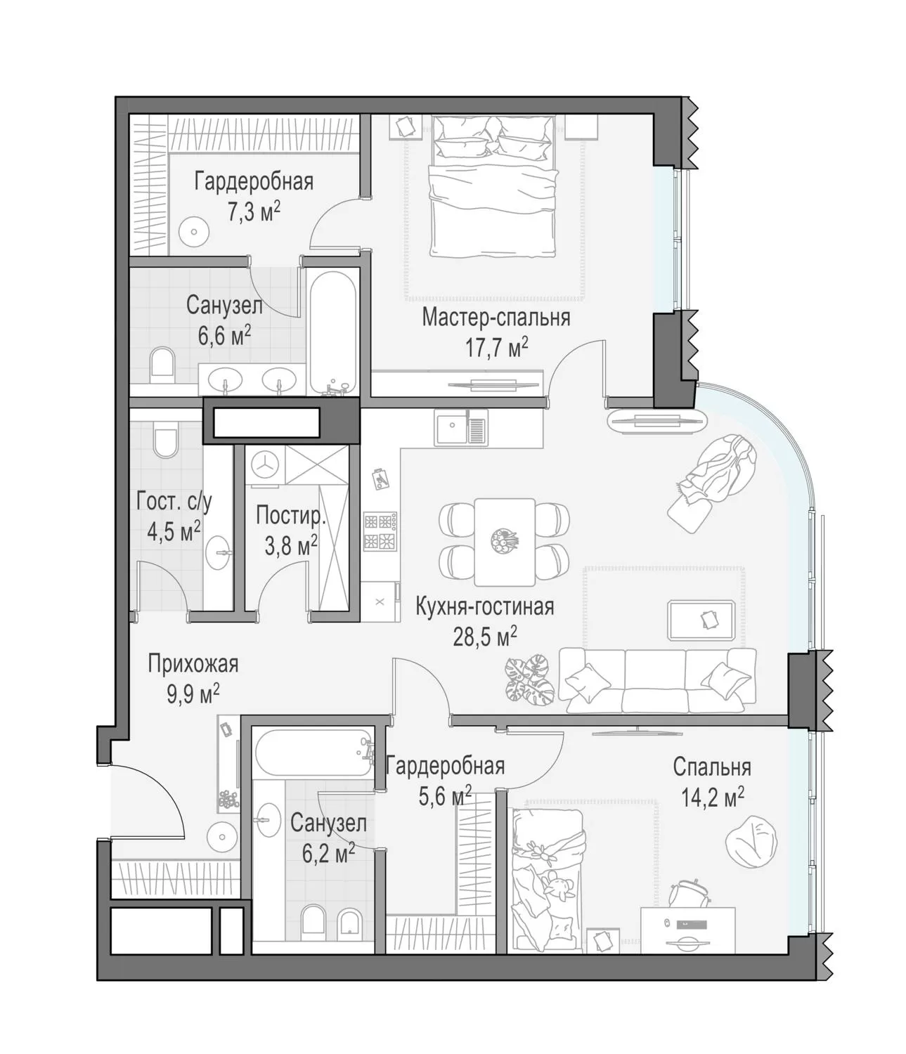 125.8 м² · 2 комнаты · 4/14 этаж · Объект сдан