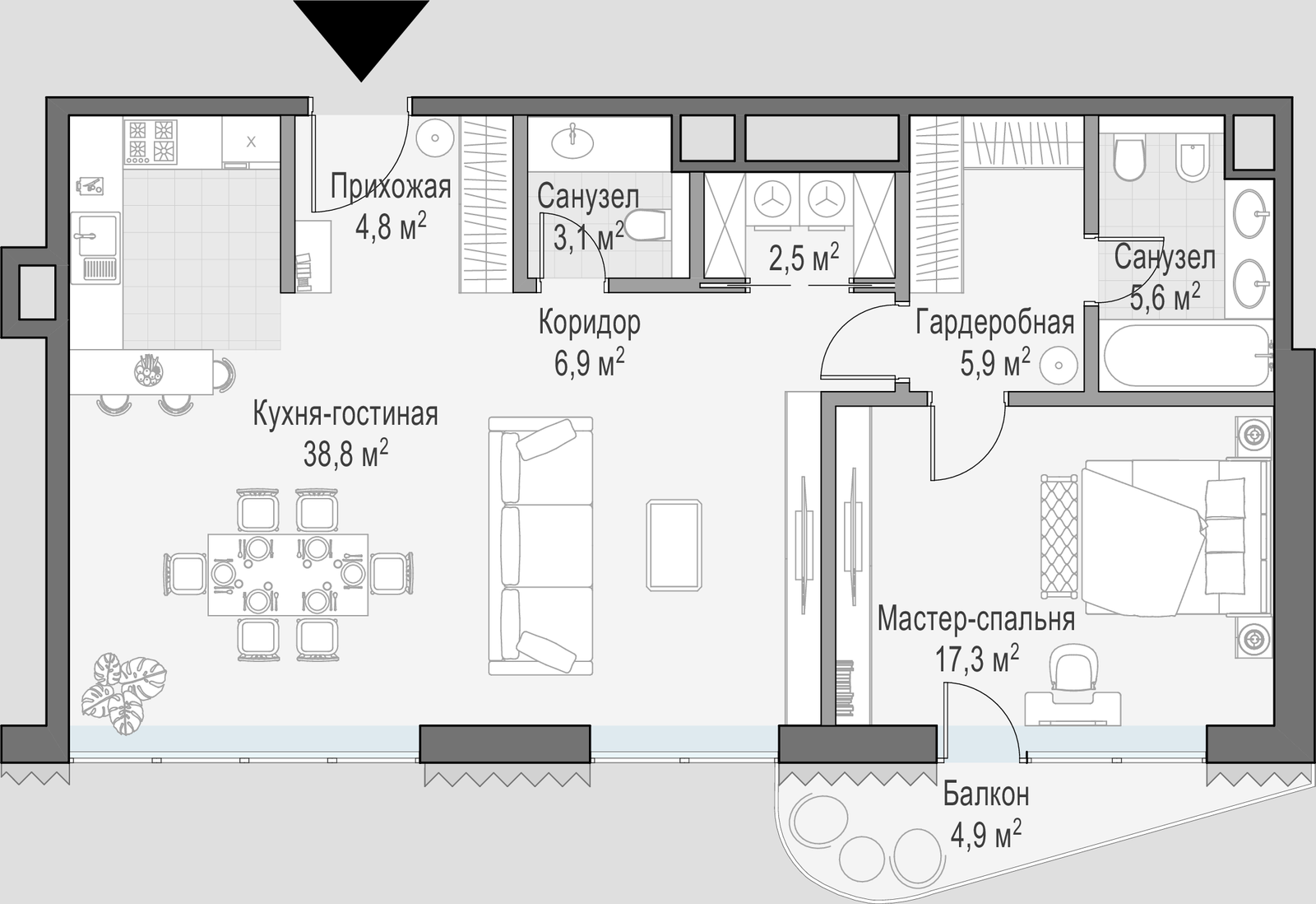 ГлавнаяЖилая недвижимостьДом «Лаврушинский»2-комнатная квартира № 4