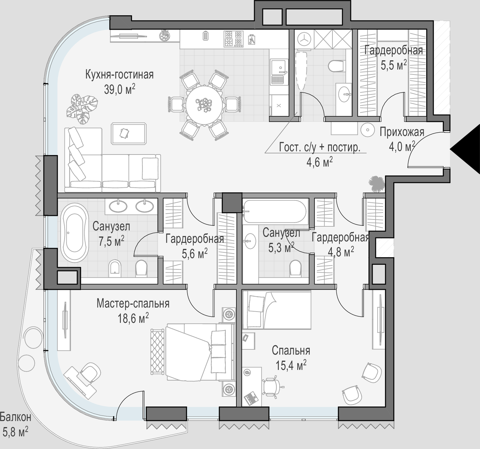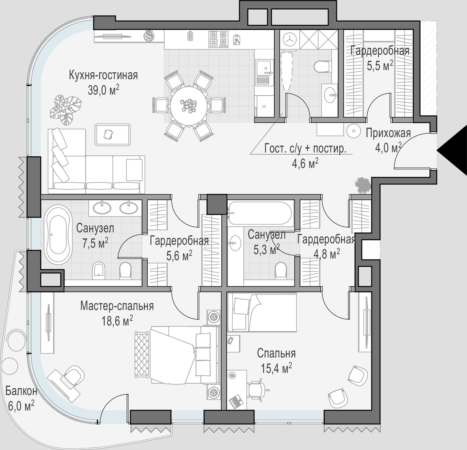 116.6 м² · 2 комнаты · 4/14 этаж · Объект сдан