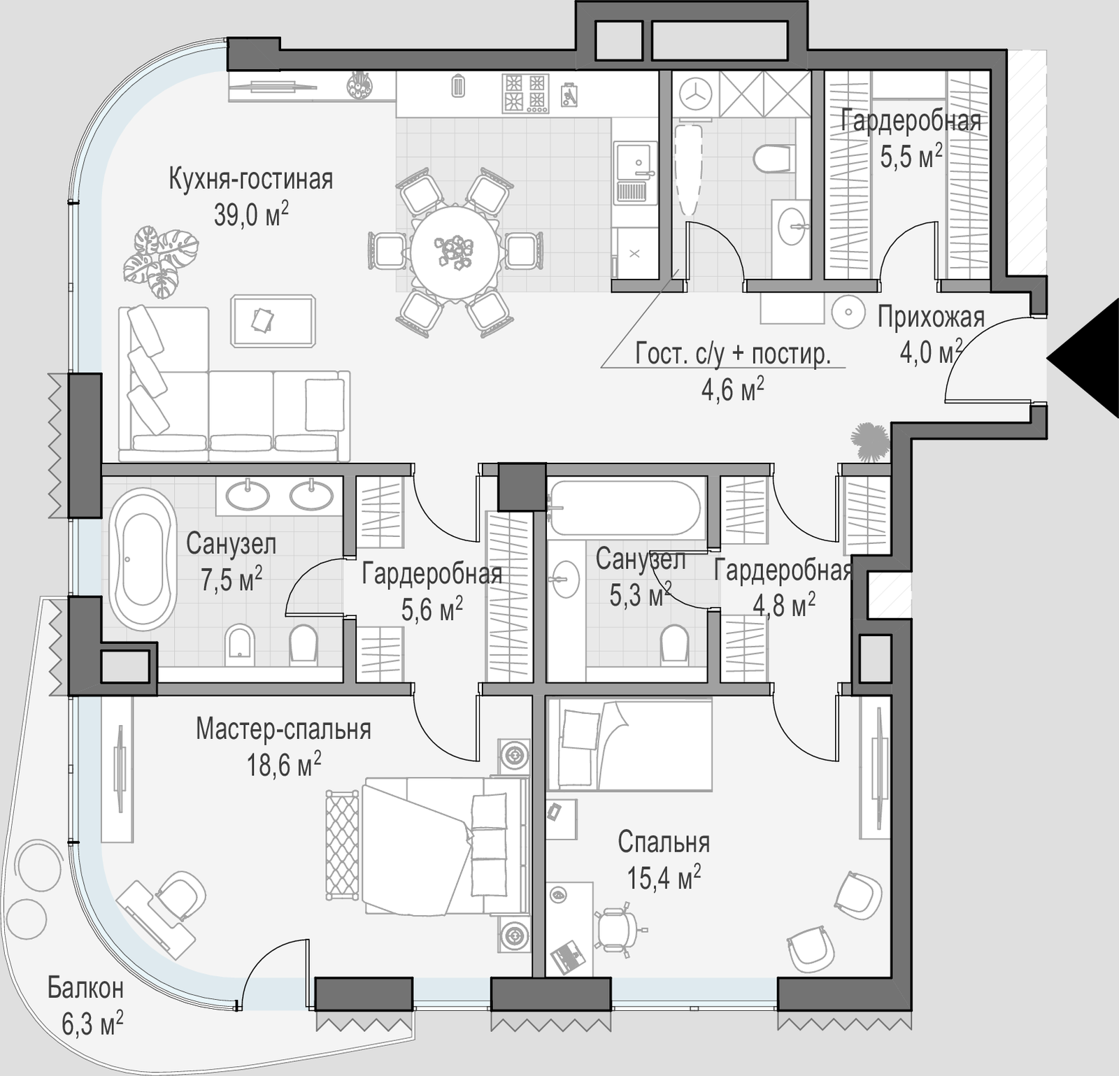 116.8 м² · 2 комнаты · 6/14 этаж · Объект сдан