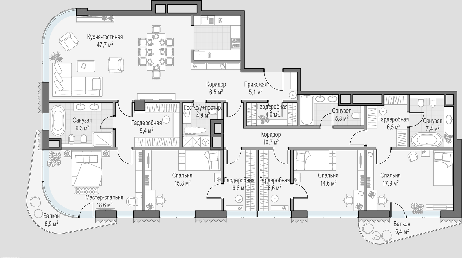 • Уникальный выбор роскошных квартир и пентхаусов с собственными бассейнами, каминами, террасами с максимальными видовыми характеристиками.