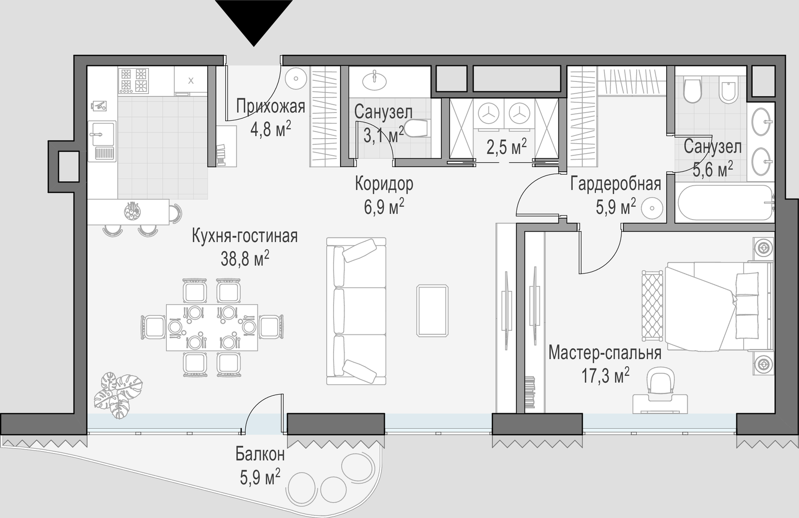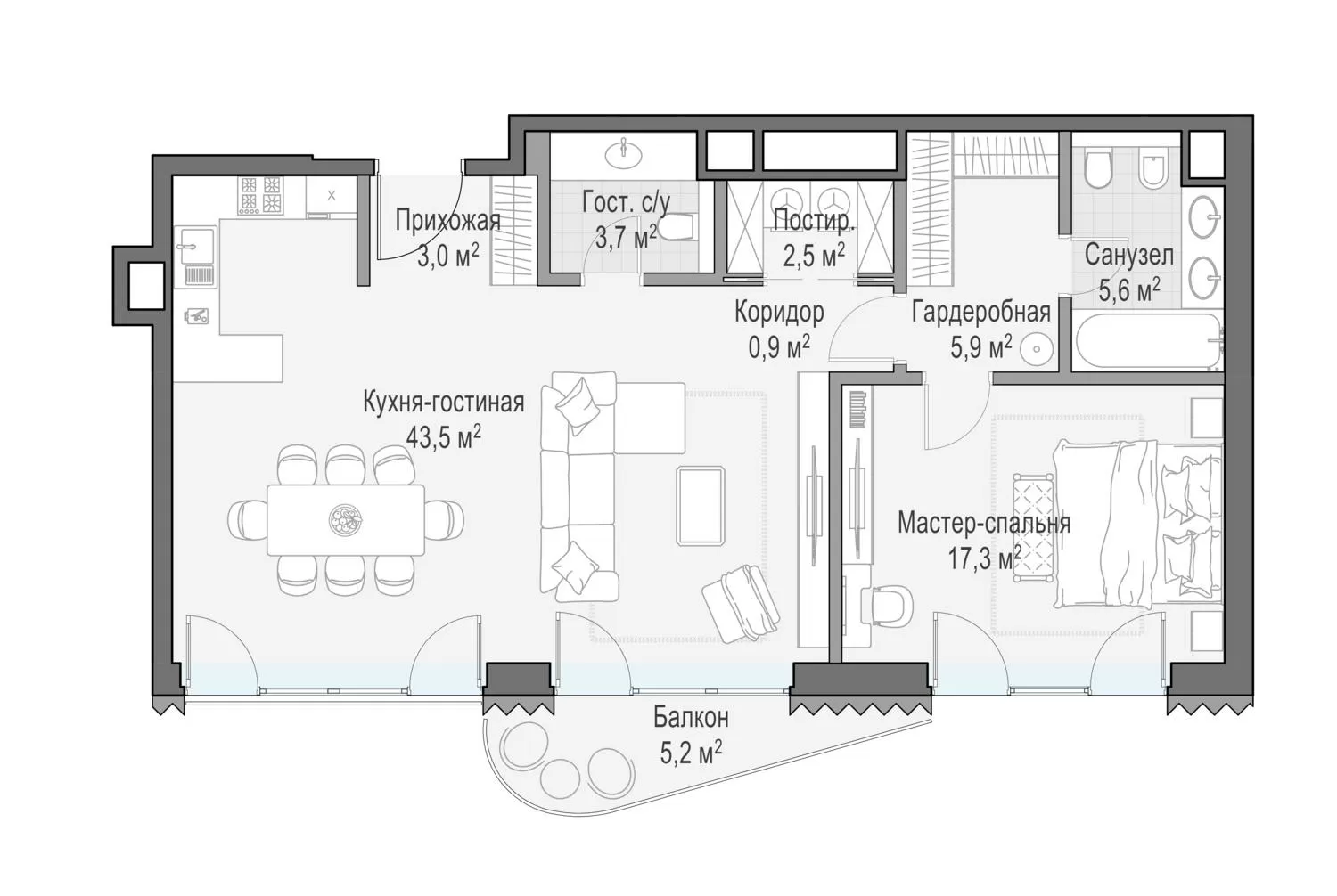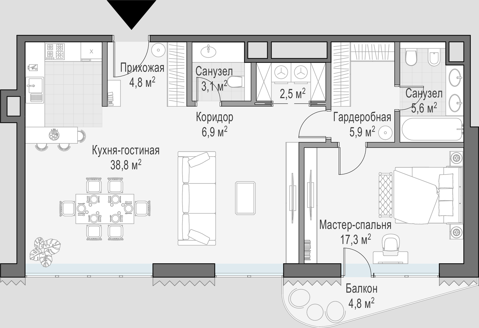 ГлавнаяЖилая недвижимостьДом «Лаврушинский»2-комнатная квартира № 4