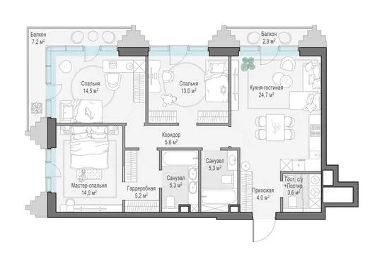 | Кленовый Двор - Корпус 2 (К3) | Сентябрь 2027 | 1 | 2 | 2 | 2 | 3 | 124.7 | 178 260 000 | без отделки | ![]() | 2 | ||