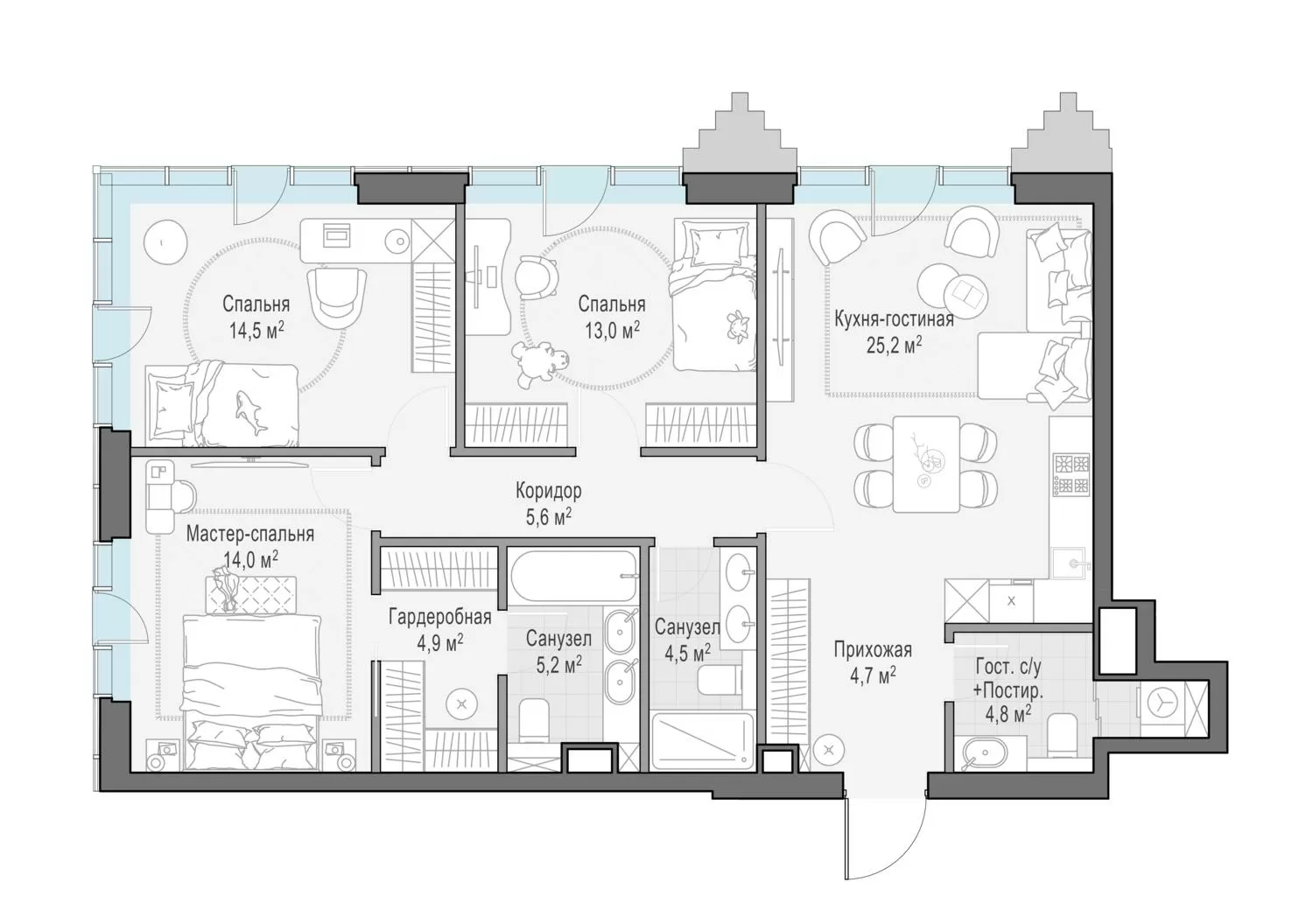 96.7 м² · 3 комнаты · 4/14 этаж · Сентябрь 2027