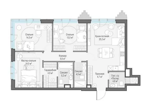 98.1 м² · 3 комнаты · 5/14 этаж · Сентябрь 2027