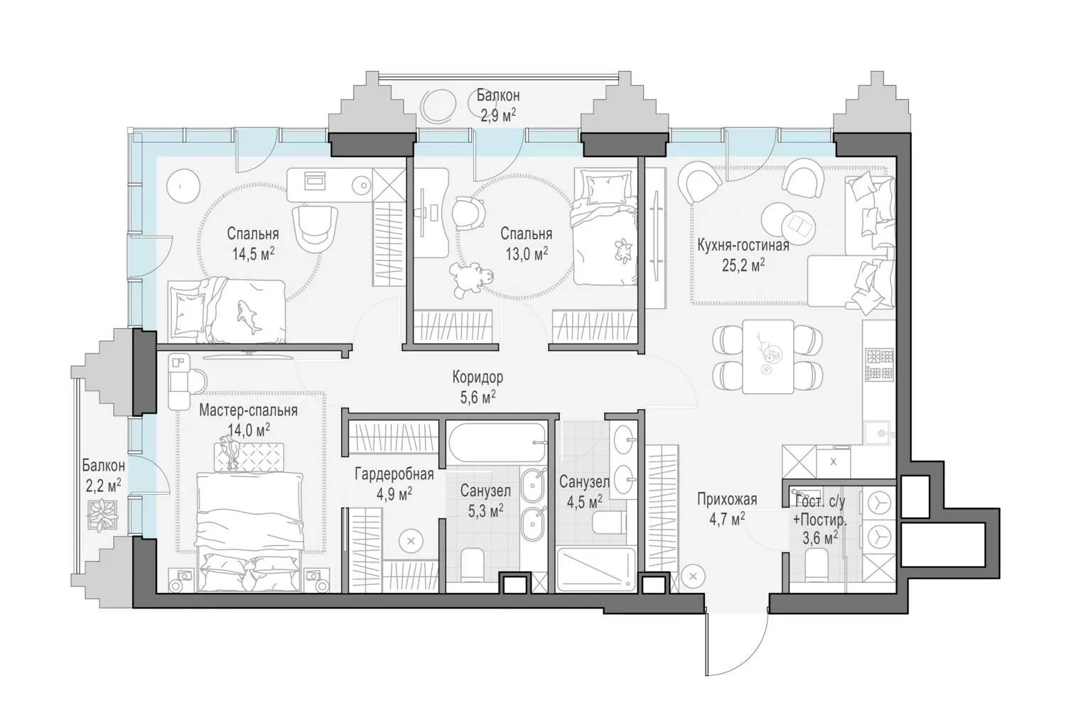 Продажа 3-комнатной квартиры № 4, 96.7 кв.м, этаж 4/14 в Квартал «Тишинский бульвар»