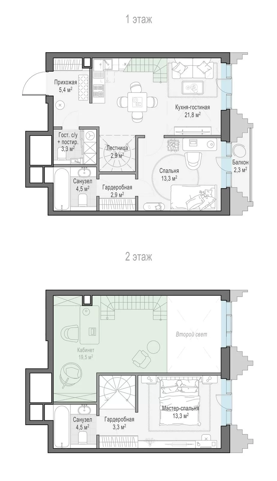 54.9 м²