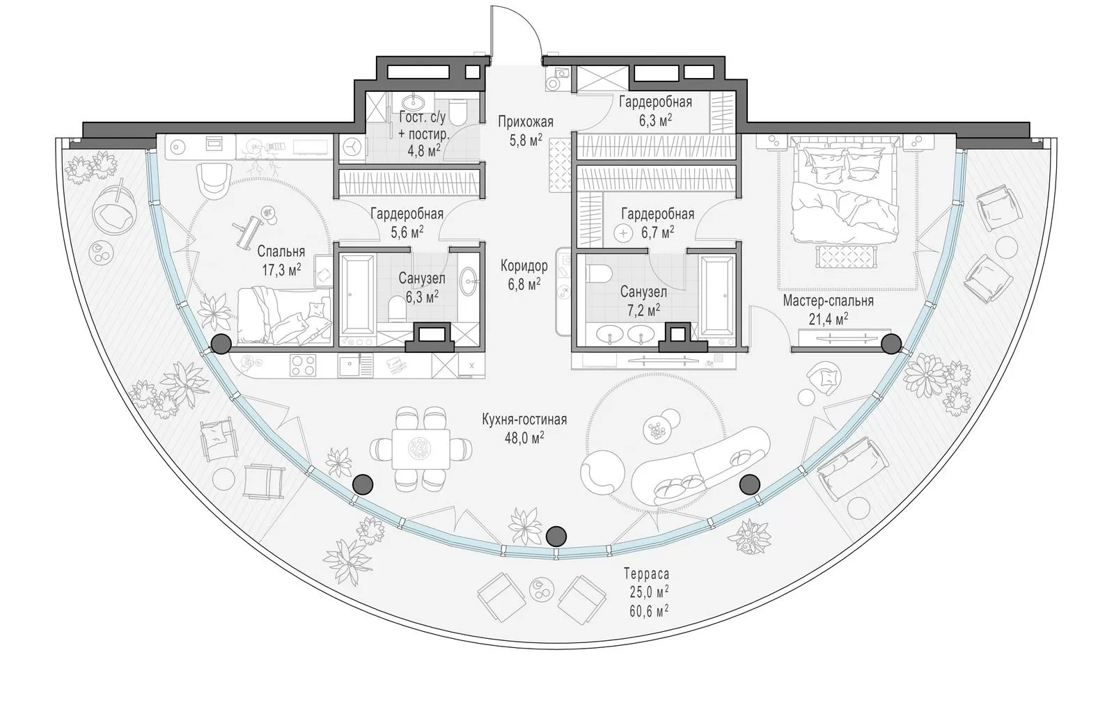 144 м² · 2 комнаты · 4/10 этаж · Сентябрь 2027