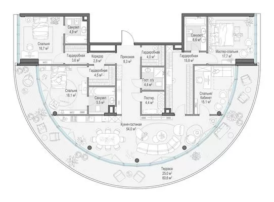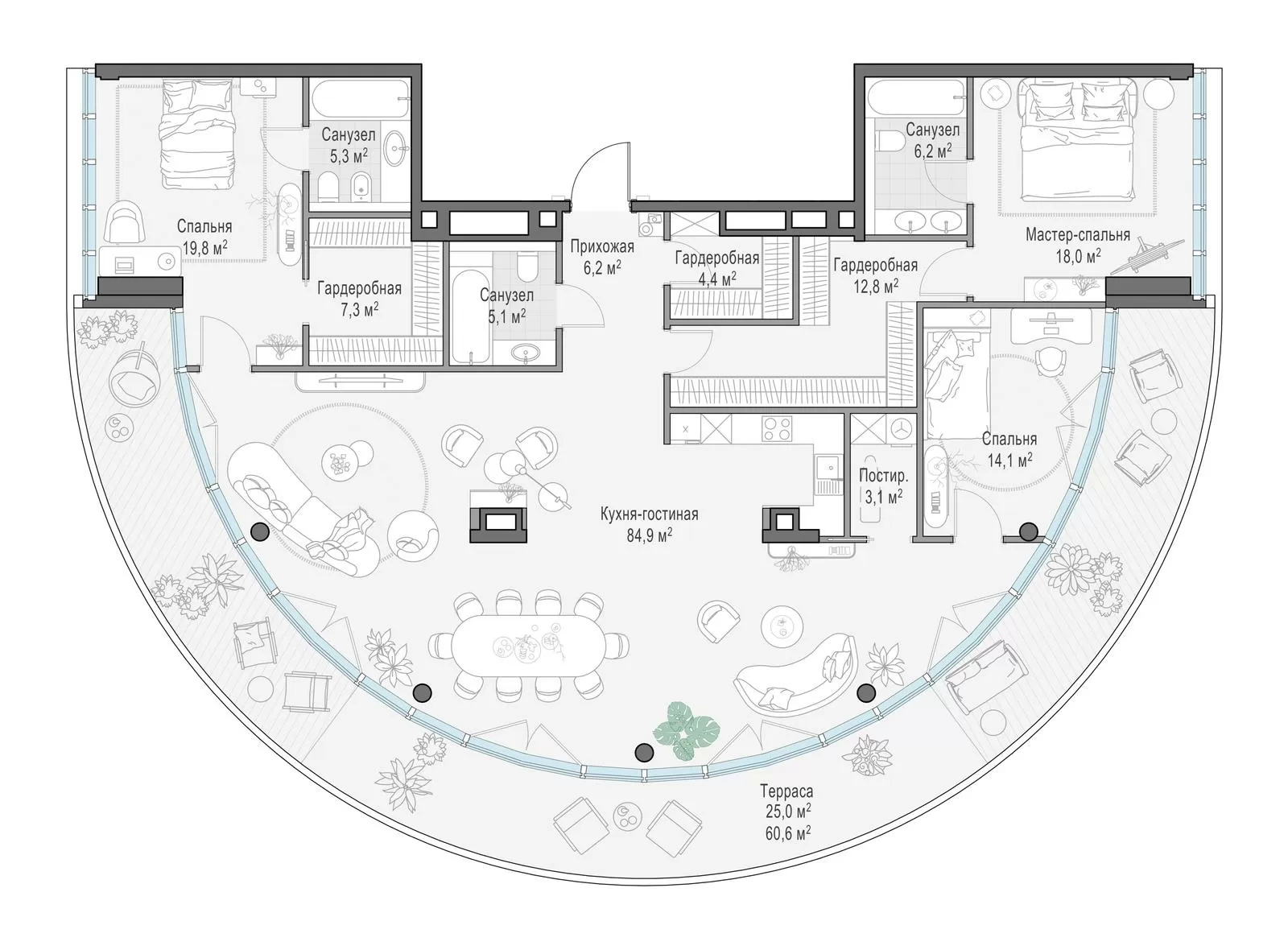 Продажа 4-комнатной квартиры № 1, 193.7 кв.м, этаж 5/10 в Клубный квартал «Фрунзенская набережная»
