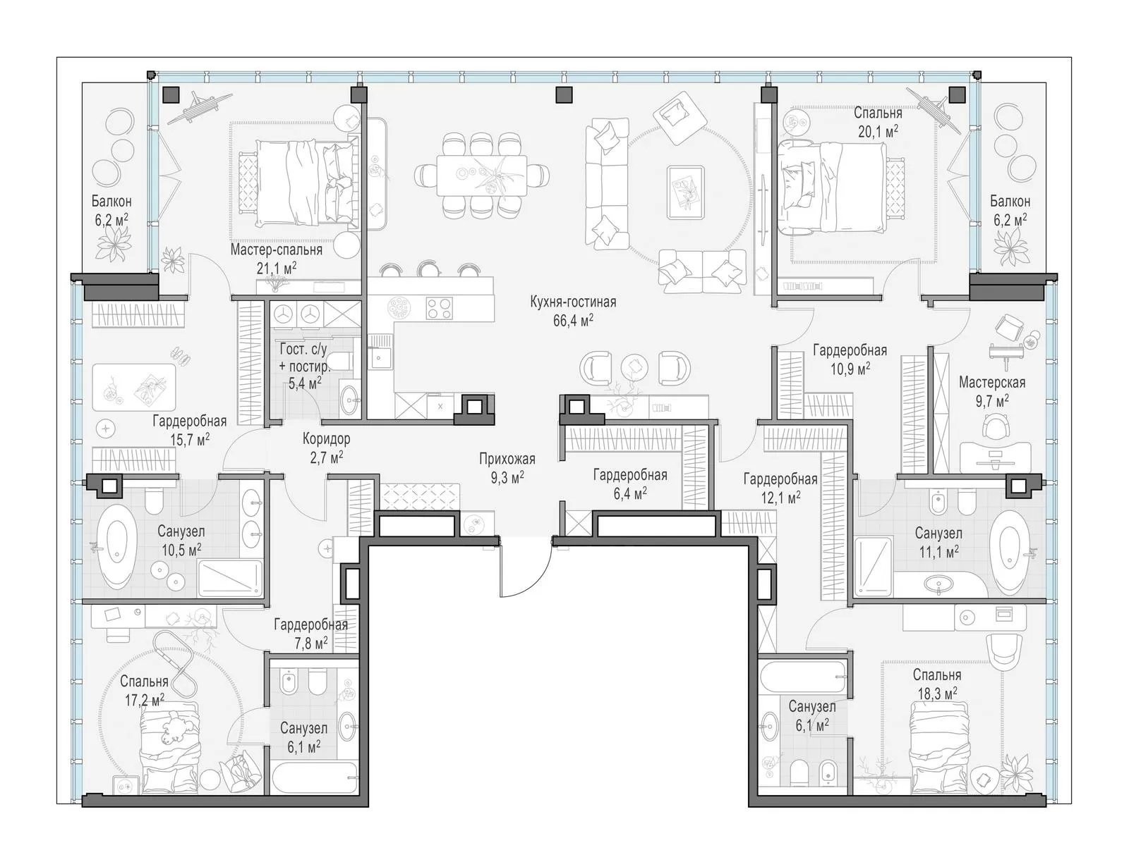 Продажа 3-комнатной квартиры № 2, 259.8 кв.м, этаж 5/10 в Клубный квартал «Фрунзенская набережная»