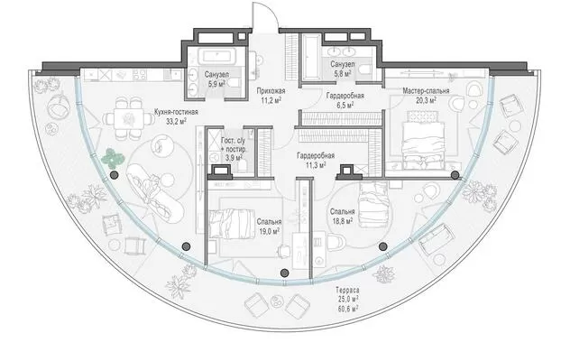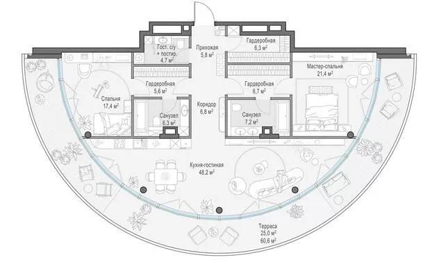 Продажа 2-комнатной квартиры № 1, 143.9 кв.м, этаж 6/10 в Клубный квартал «Фрунзенская набережная»
