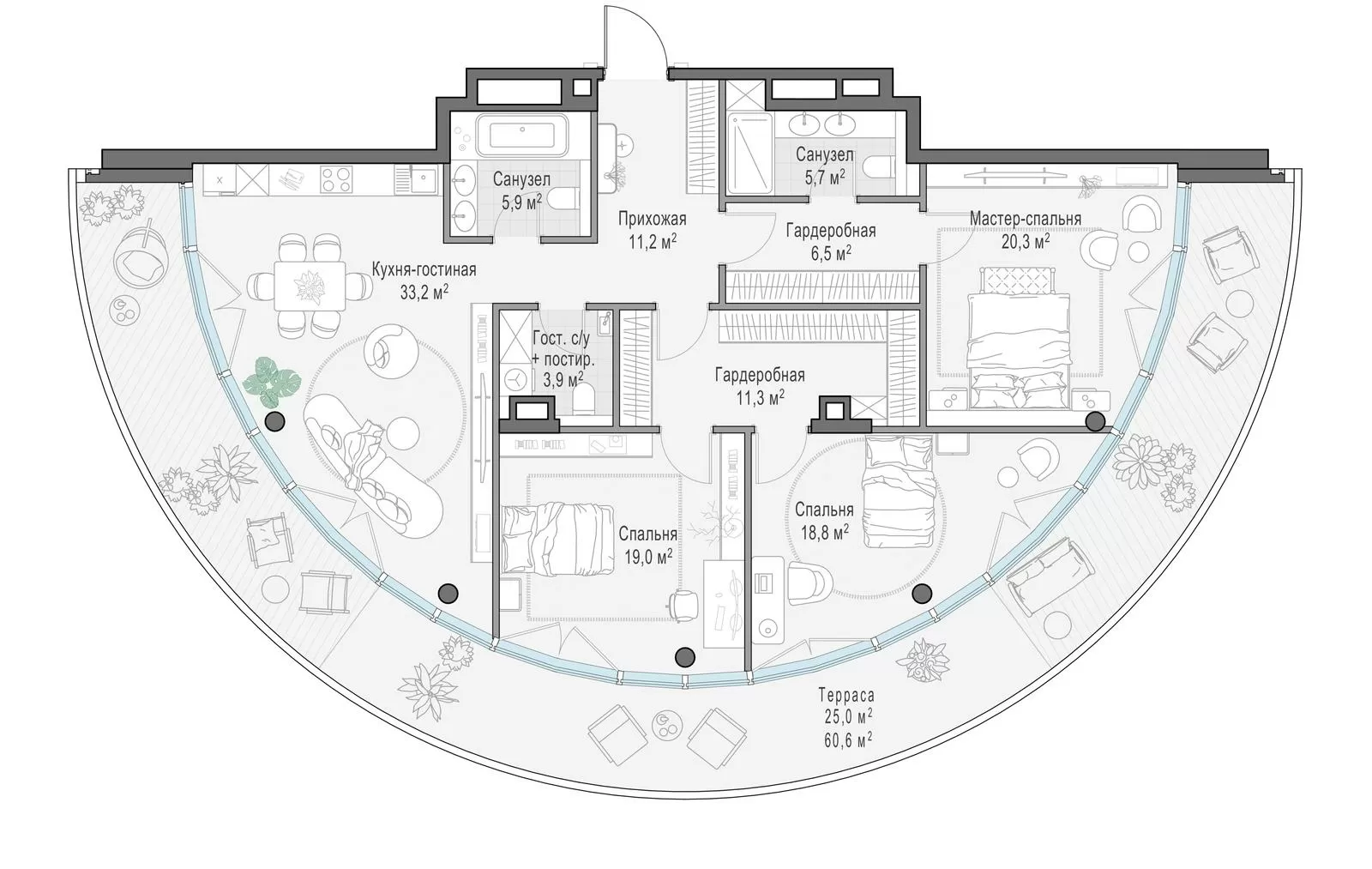 • «Фрунзенская набережная» — это единый ансамбль из трёх элегантных архитектурных образов, воплощённых в домах разной этажности.
