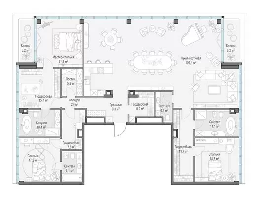 Продажа 3-комнатной квартиры № 1, 170.4 кв.м, этаж 1/10 в Клубный квартал «Фрунзенская набережная»