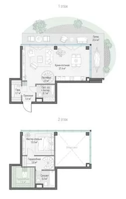 Продажа 1-комнатной квартиры № 2, 55.2 кв.м, этаж 1/10 в Клубный квартал «Фрунзенская набережная»