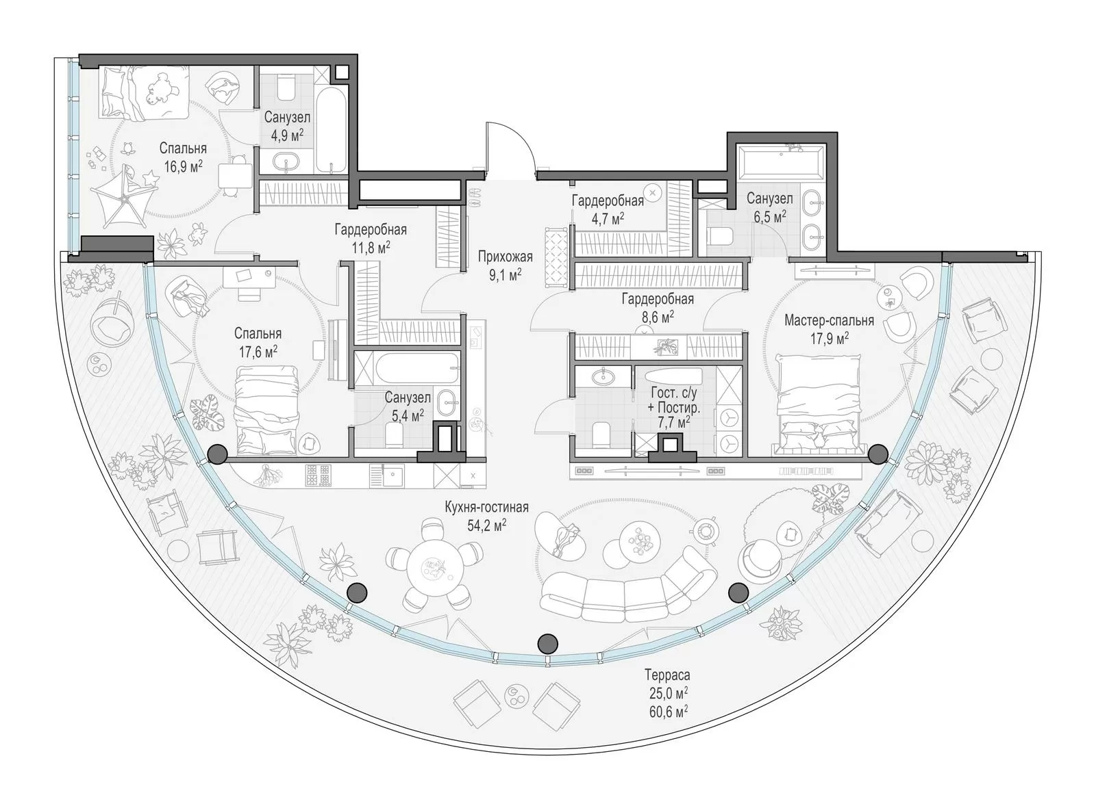 Продажа 3-комнатной квартиры № 1, 172.5 кв.м, этаж 3/10 в Клубный квартал «Фрунзенская набережная»