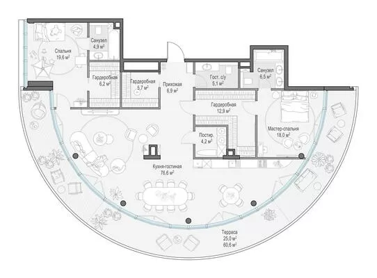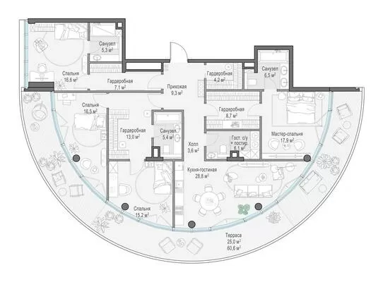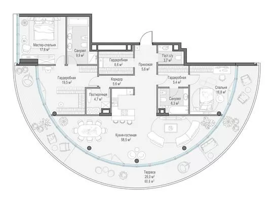 Продажа 3-комнатной квартиры № 2, 197.6 кв.м, этаж 3/10 в Клубный квартал «Фрунзенская набережная»