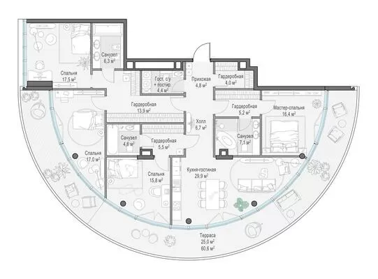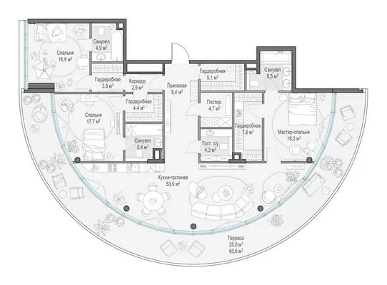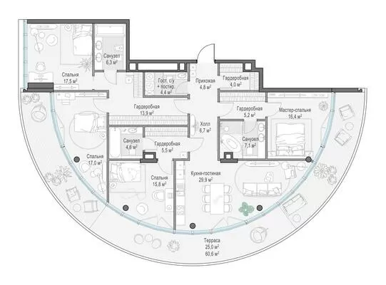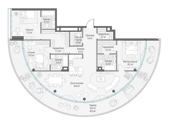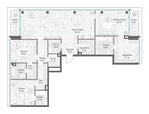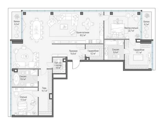 172.7 м² · 3 комнаты · 5/10 этаж · Сентябрь 2027