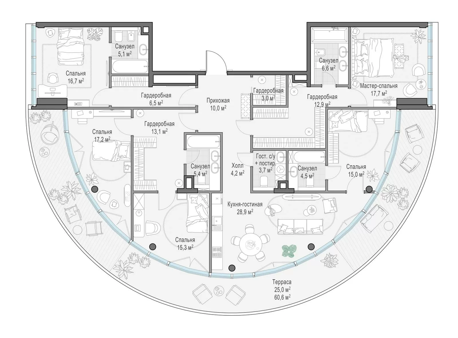 194.2 м² · 4 комнаты · 6/10 этаж · Сентябрь 2027