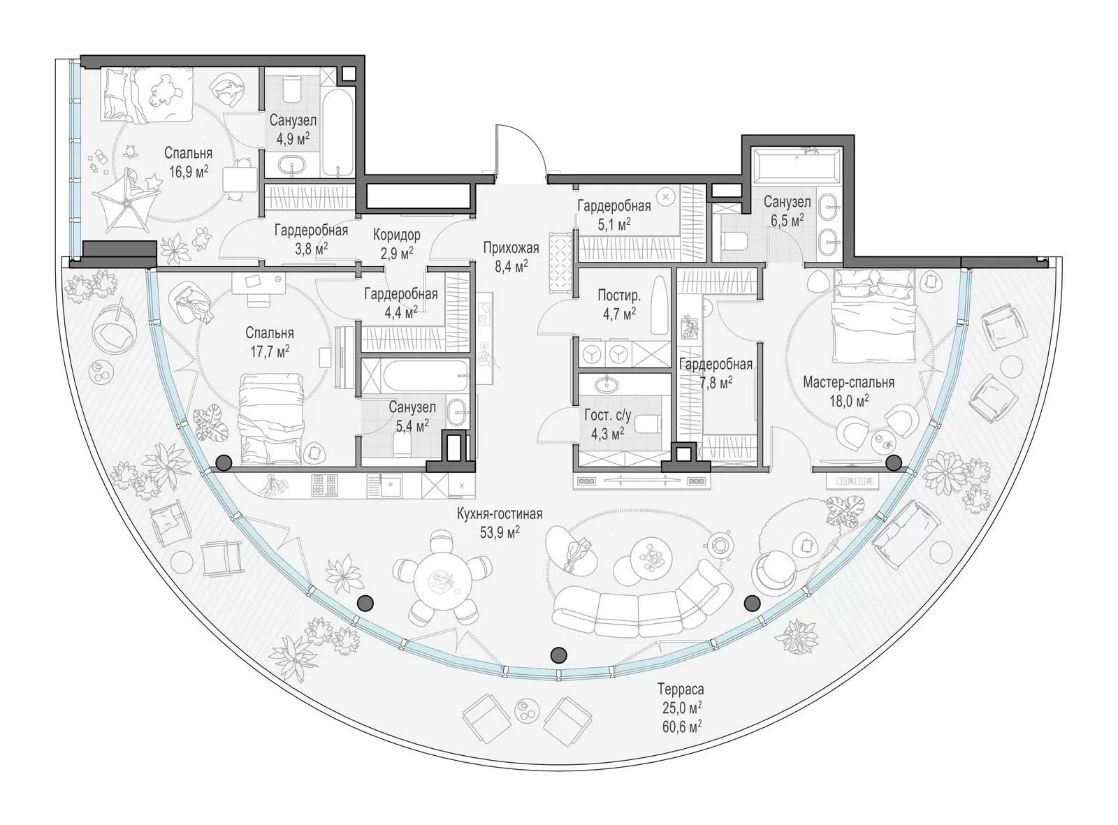 Продажа 3-комнатной квартиры № 1, 172.7 кв.м, этаж 5/10 в Клубный квартал «Фрунзенская набережная»