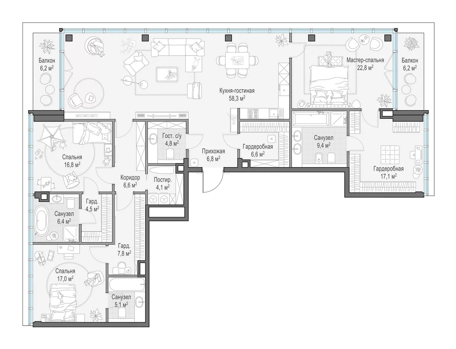 Продажа 3-комнатной квартиры № 2, 197.6 кв.м, этаж 5/10 в Клубный квартал «Фрунзенская набережная»