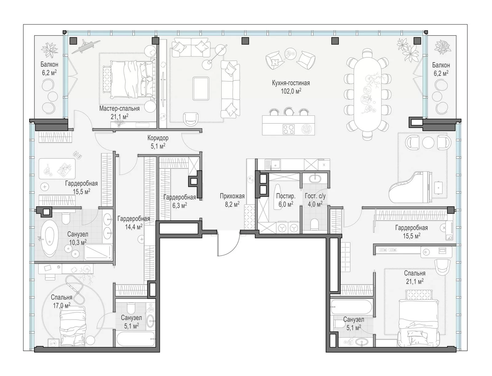 Продажа 4-комнатной квартиры № 2, 258.2 кв.м, этаж 6/10 в Клубный квартал «Фрунзенская набережная»