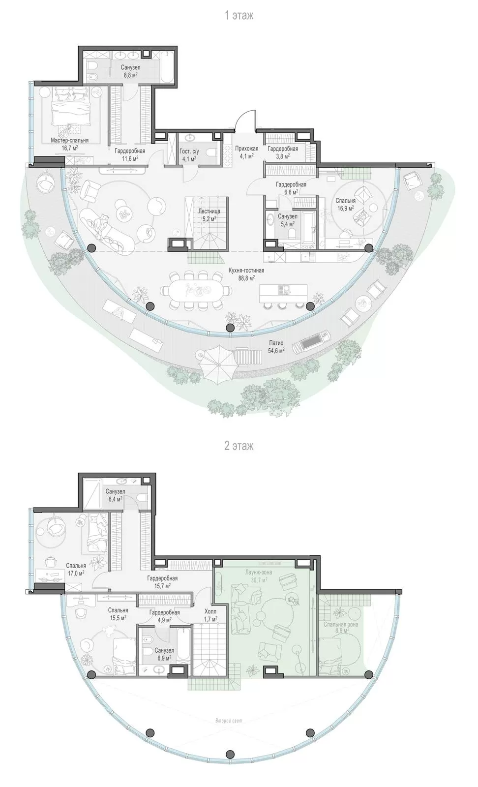 • «Фрунзенская набережная» — это единый ансамбль из трёх элегантных архитектурных образов, воплощённых в домах разной этажности.