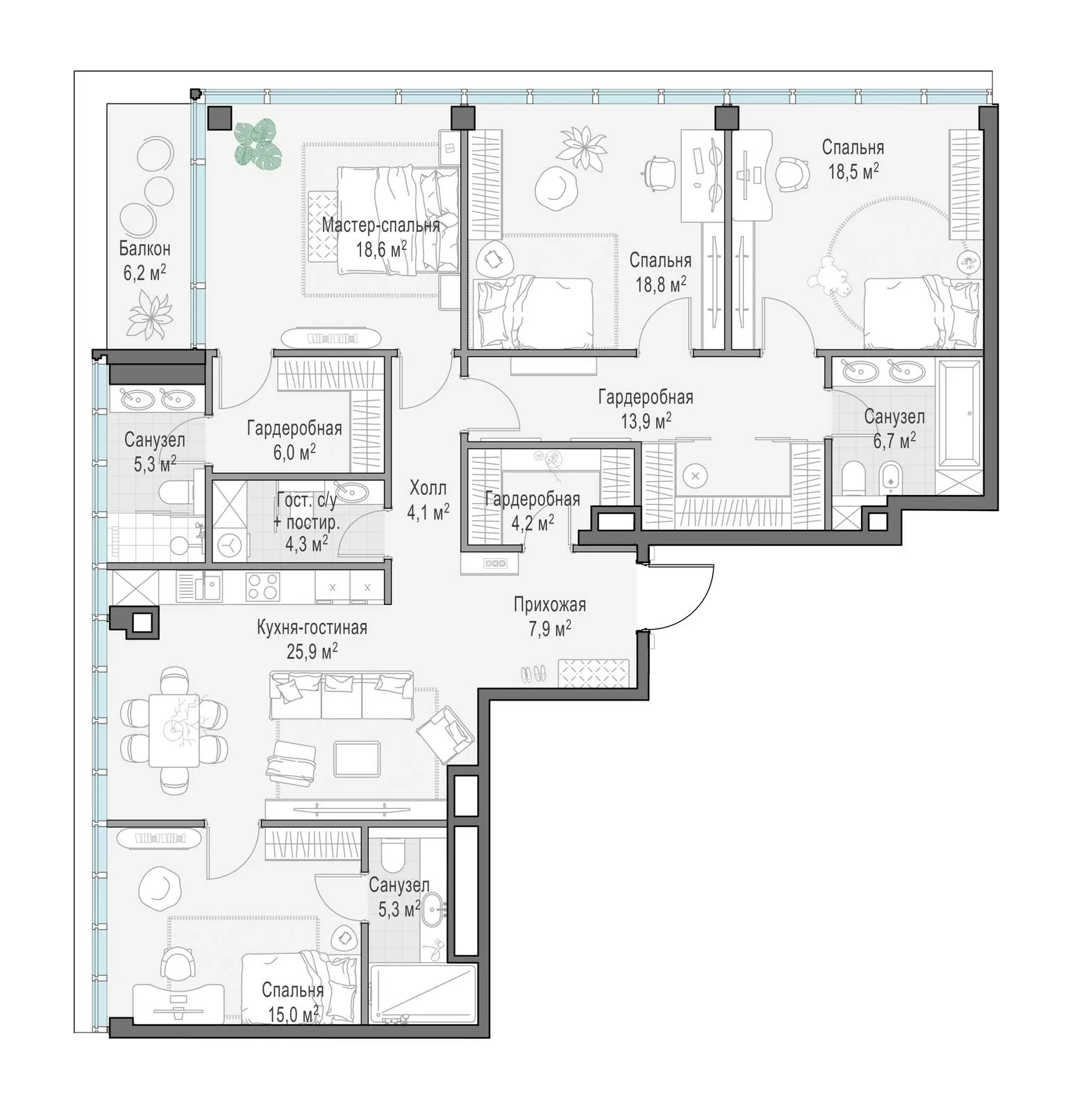 156.7 м² · 3 комнаты · 6/10 этаж · Сентябрь 2027