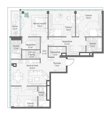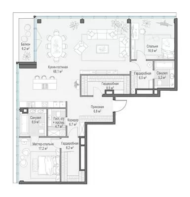 Продажа 3-комнатной квартиры № 1, 157.6 кв.м, этаж 2/10 в Клубный квартал «Фрунзенская набережная»