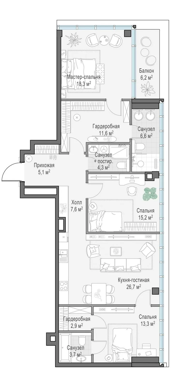117.9 м² · 2 комнаты · 6/10 этаж · Сентябрь 2027