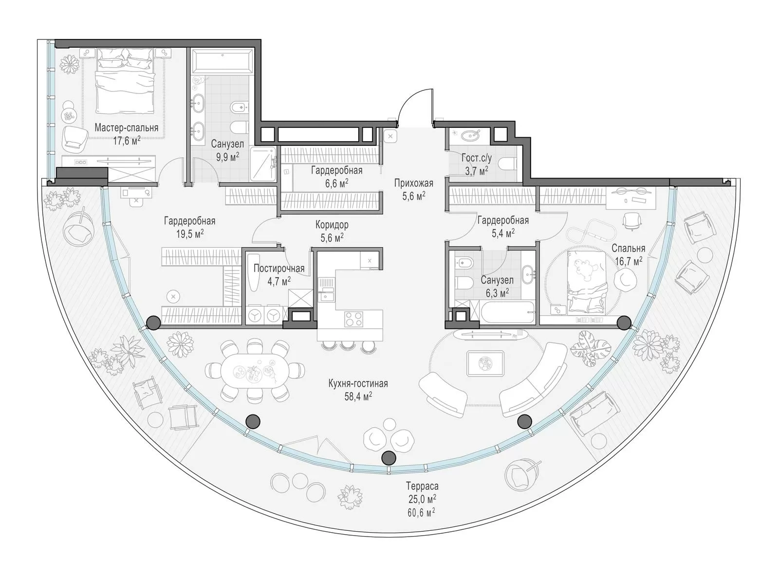 Продажа 3-комнатной квартиры № 4, 167.2 кв.м, этаж 3/10 в Клубный квартал «Фрунзенская набережная»
