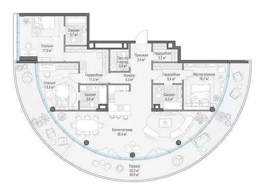 Продажа 3-комнатной квартиры № 4, 167.5 кв.м, этаж 5/10 в Клубный квартал «Фрунзенская набережная»