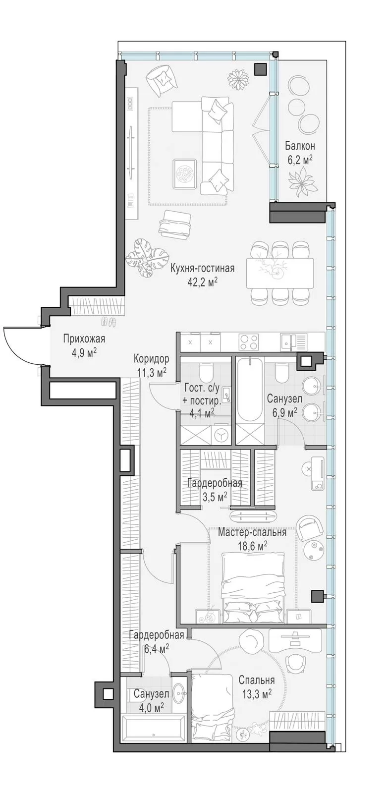 118 м² · 2 комнаты · 3/10 этаж · Сентябрь 2027