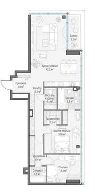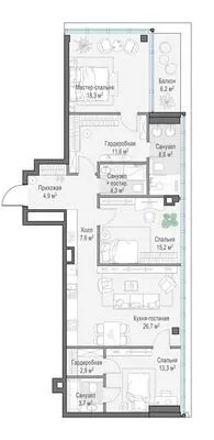 Продажа 2-комнатной квартиры № 2, 117.8 кв.м, этаж 8/10 в Клубный квартал «Фрунзенская набережная»