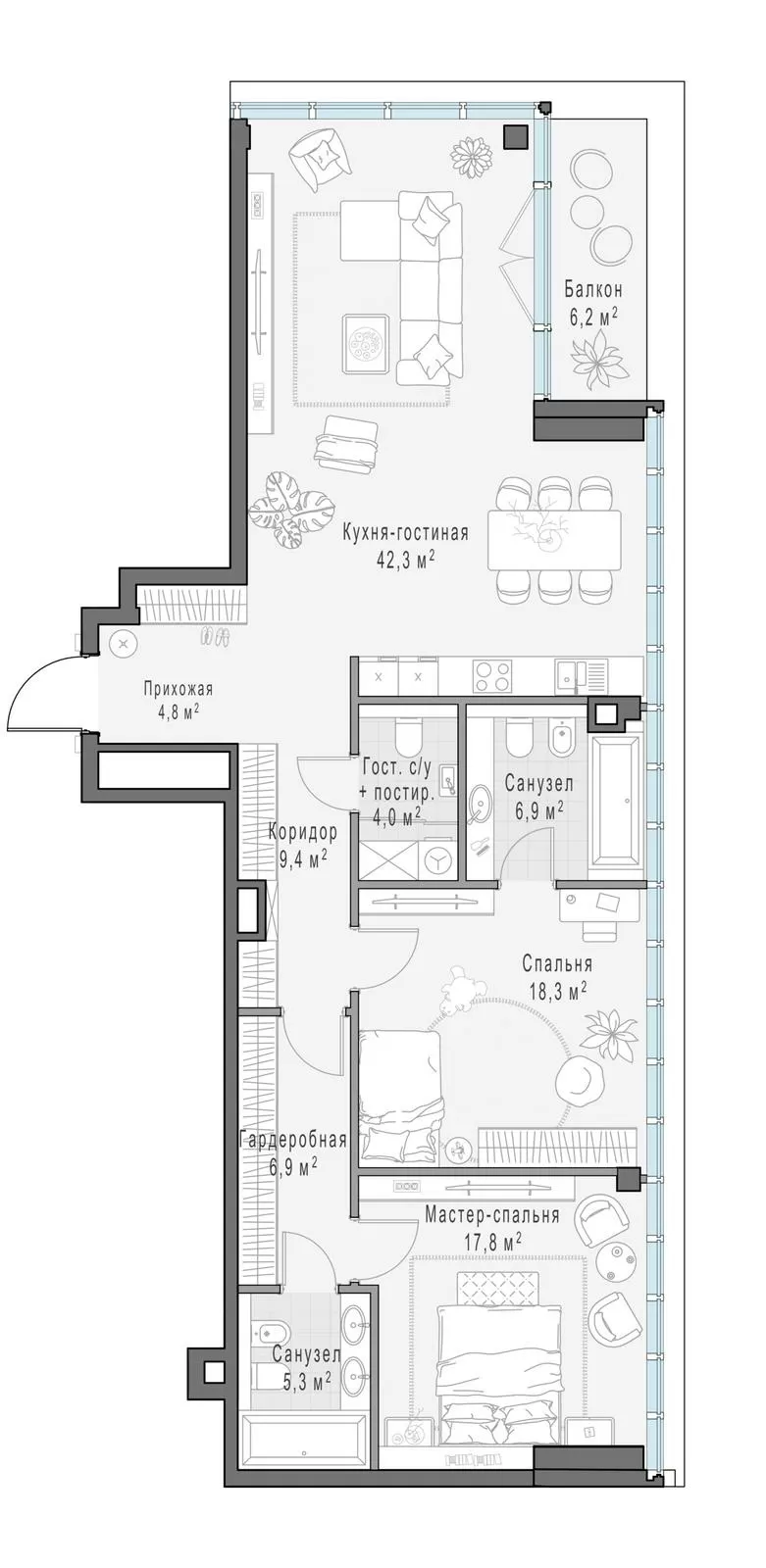 117.9 м² · 2 комнаты · 6/10 этаж · Сентябрь 2027