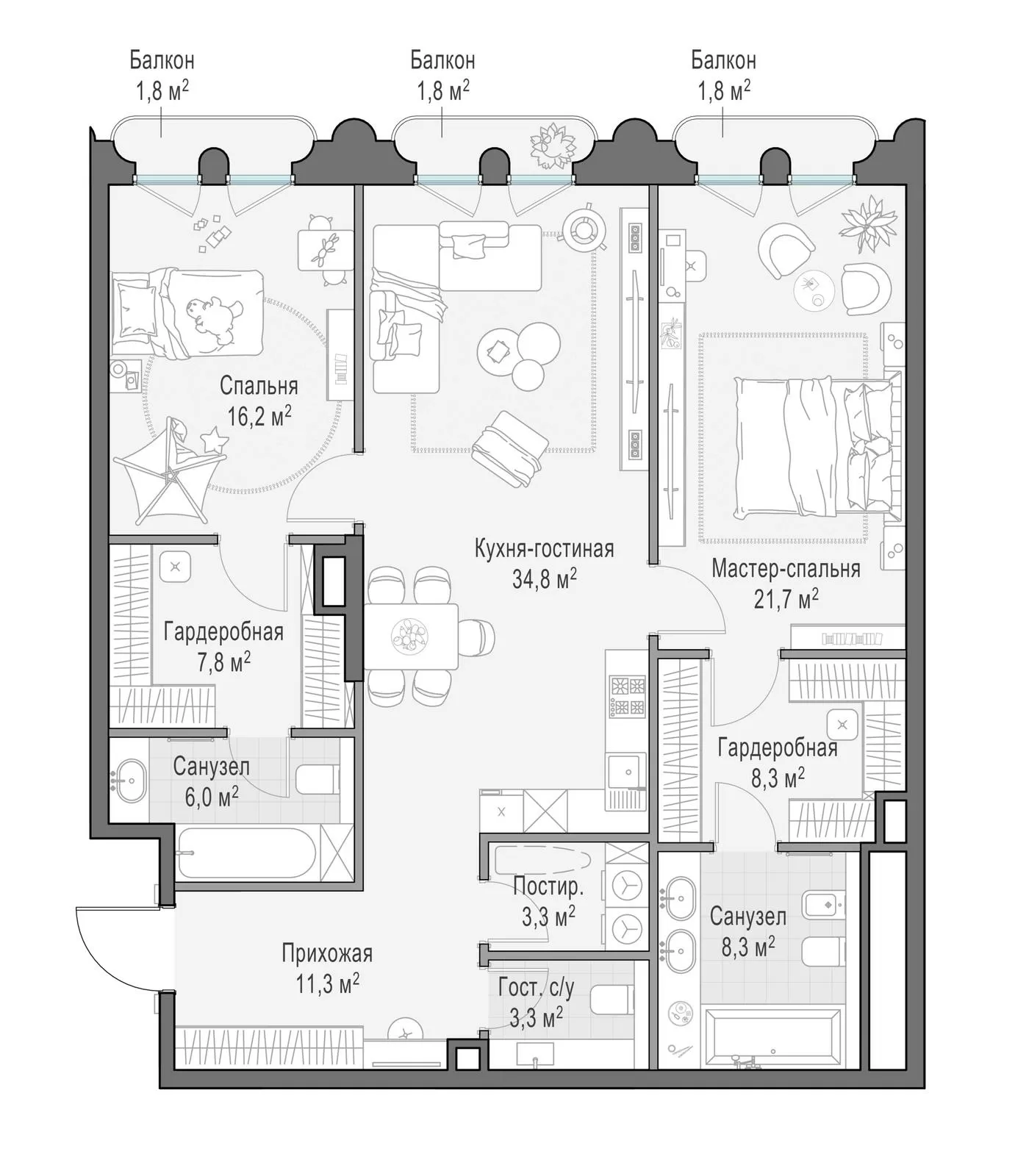 118.2 м² · 2 комнаты · 6/13 этаж · Сентябрь 2027