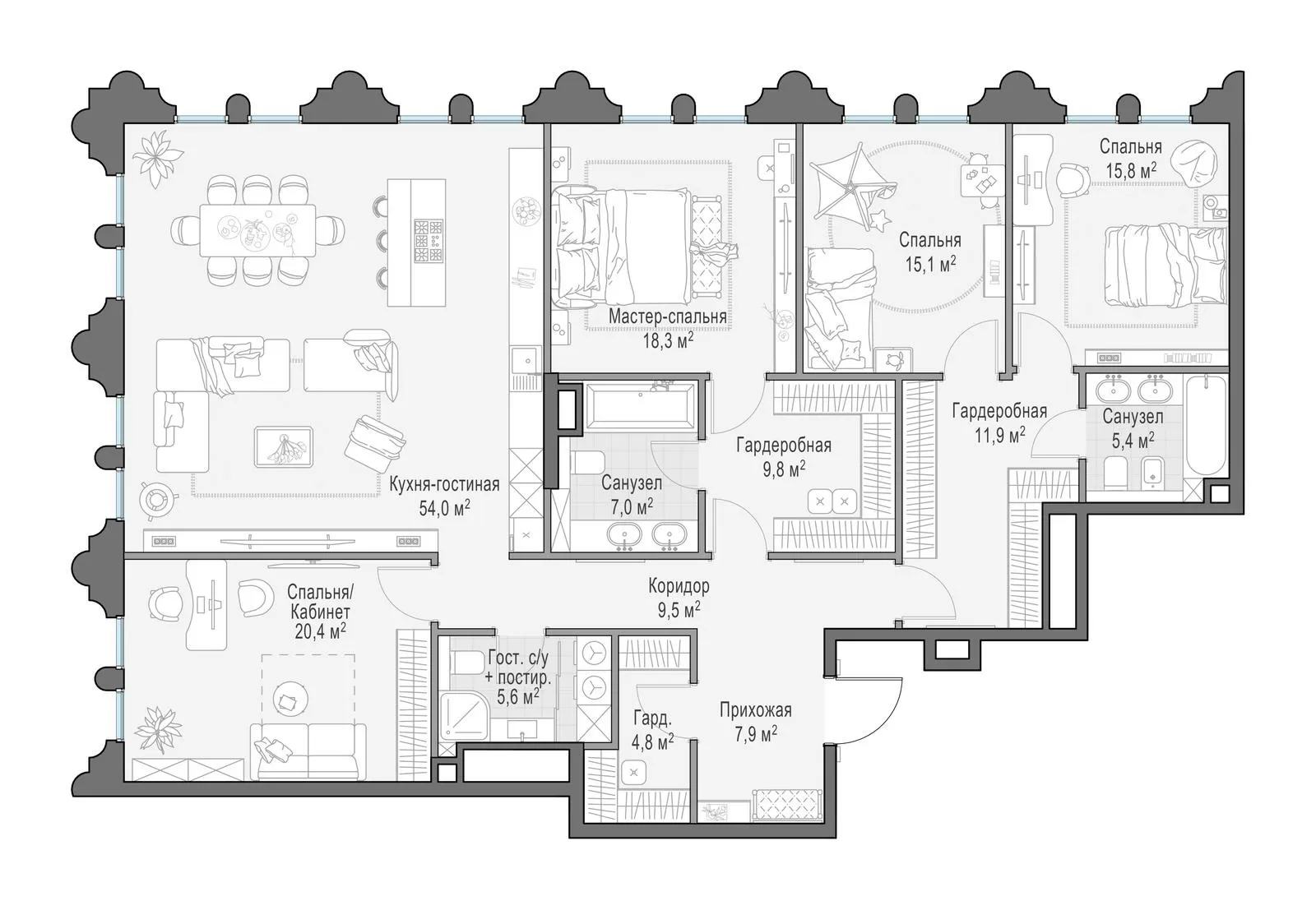 202.9 м² · 4 комнаты · 7/13 этаж · Сентябрь 2027