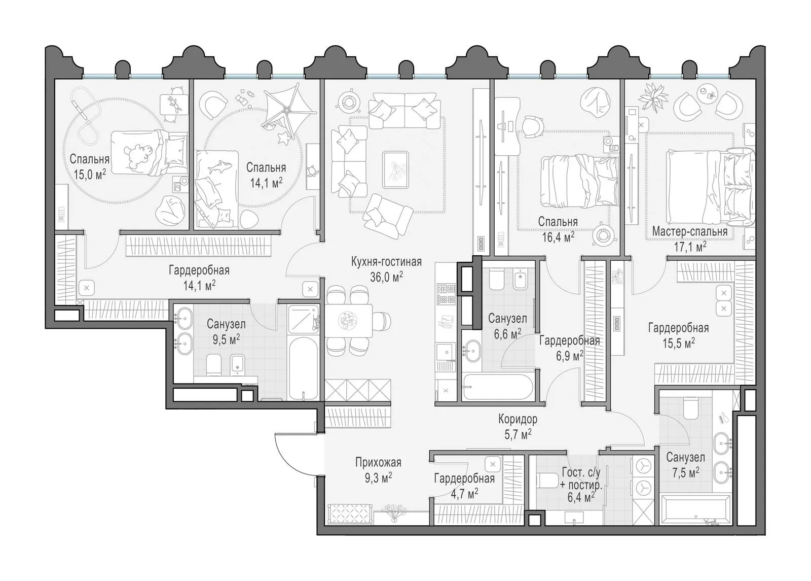 186 м² · 3 комнаты · 5/13 этаж · Сентябрь 2027