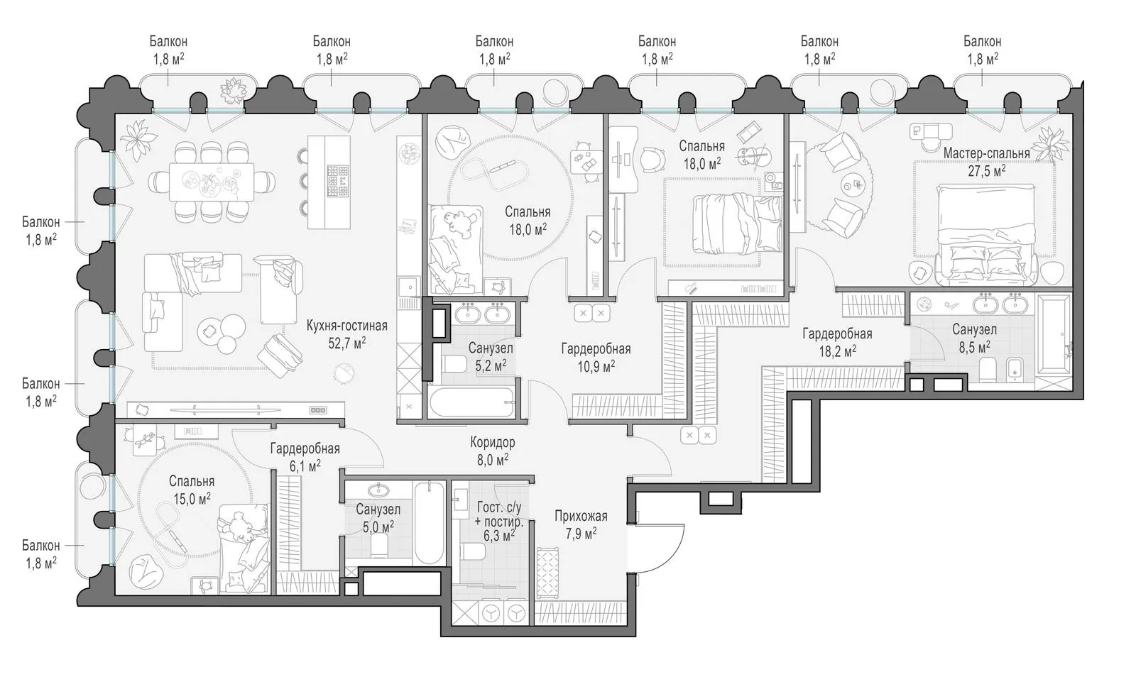 184.8 м² · 4 комнаты · 9/13 этаж · Сентябрь 2027