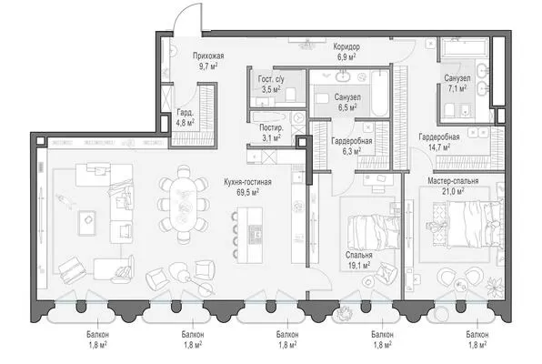 184.4 м² · 3 комнаты · 8/13 этаж · Сентябрь 2027