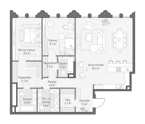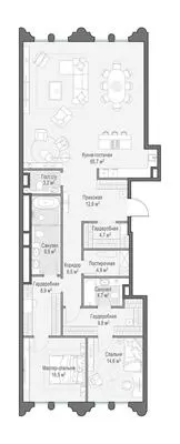 Продажа 3-комнатной квартиры № 4, 172.8 кв.м, этаж 10/13 в Клубный квартал «Фрунзенская набережная»