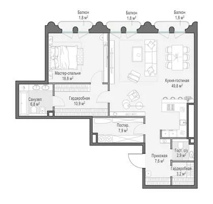 119.8 м² · 2 комнаты · 9/13 этаж · Сентябрь 2027