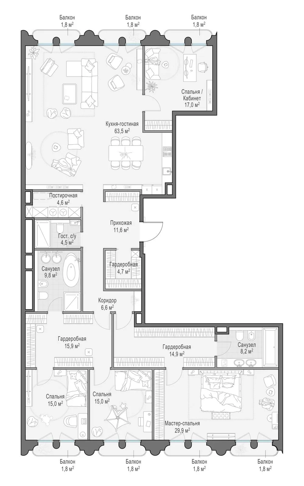 Продажа 3-комнатной квартиры № 1, 225.4 кв.м, этаж 10/13 в Клубный квартал «Фрунзенская набережная»
