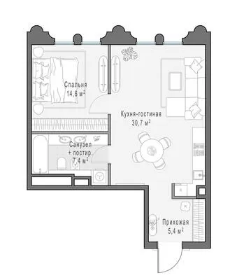 59.2 м² · 1 комната · 8/13 этаж · Сентябрь 2027